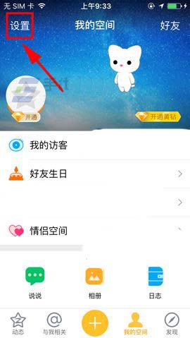 1)我們打開QQ空間軟件點擊【我的空間】,接著再點擊左上角的【設置】。(如下圖)
