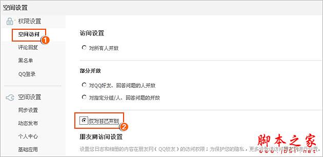 2、空間訪問權(quán)限中選擇“僅對自己開放”保存即可,后續(xù)更新動態(tài)信息就不會通知好友;同時,您也可以設(shè)置“部分開放”,沒被指定的好友不會收到動態(tài)更新。
