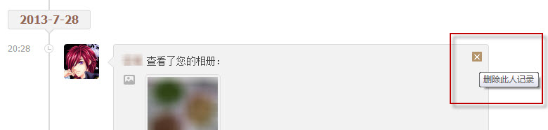 將鼠標放到要刪除記錄的好友頭像上,過會兒會出現一個x