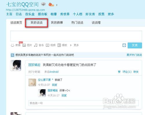 進去后,我們首先看到的是朋友們的說說,我們點上面導航,“我的說說”。