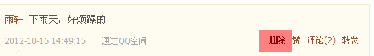 5、進入自己的空間,然后進入你想刪除的評論的頁面,點擊評論就會出現(xiàn)刪除的按鍵。如下圖: