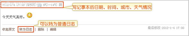 b、展開之后的記事如下圖,有完整的記事內(nèi)容跟最后修改時間,記事本也可以將記事轉(zhuǎn)為普通日志;