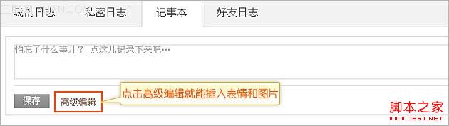 a、點擊記事本,在下方可看到高級編輯的字樣。編輯器跟日志里的編輯器差不多。打開編輯器應(yīng)該就能發(fā)現(xiàn)跟日志里的編輯器相差在那里。沒有投票,F(xiàn)LASH等等;