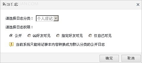 c、當(dāng)前系統(tǒng)只能將記事本內(nèi)容轉(zhuǎn)換成為默認分類的公開日志。