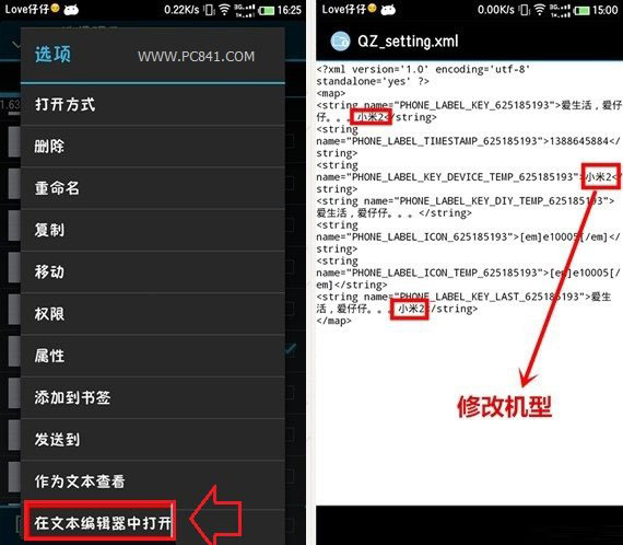 選擇在文本編輯器中打開,然后修改手機機型,也就是尾巴名稱