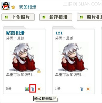 1、請登陸photo.qq.com,點擊“我的相冊”,點擊想要修改名稱的相冊下方的小錘子按扭;