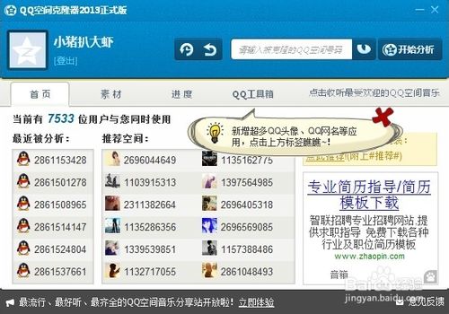 1、找認(rèn)識的人的空間,記錄QQ號碼。建議找有QQ訪問權(quán)限的空間,不然有時候克隆就會失敗。
