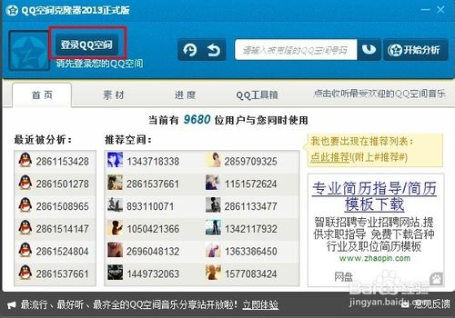 對于第二種找素材的方法,只要進(jìn)入QQ空間后,點擊左上中部的“克隆空間”
