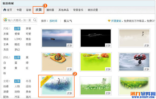 2.在頁面上方點擊“裝扮商城”,選擇您喜歡的特供物品,(如專題、套裝、播放器、其他單品)都可以,點擊即可裝扮。