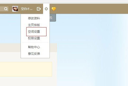 第二步:在標題欄找到“設置”的圖標,把鼠標放上去就會出現下圖的下拉列表,然后找到“空間設置”,點擊進去