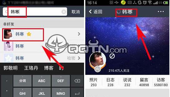 2、輸入完成后,點(diǎn)擊下面你所輸入的那個(gè)人的空間即可進(jìn)入。