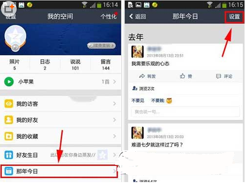 手機QQ空間上面有一個功能相信大家都很熟悉,那就是“那年的今日”,可以顯示自己的好友在一年前的今天所寫的一些個人狀態。這個功能有好處,但也讓不少網友不適應,經常一不小心就誤認為是自己朋友剛發的,剛評論完才被自己好友告知怎么給我一年前寫的東西發評論,很是尷尬。其實這個功能如果大家不喜歡是可以隱藏起來的,下面小編就教大家隱藏方法。