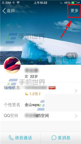 1)首先打開手機(jī)QQ,在界面點(diǎn)擊【聯(lián)系人】,選擇你要屏蔽的好友點(diǎn)擊進(jìn)入,點(diǎn)擊右上方【更多】。(如下圖)