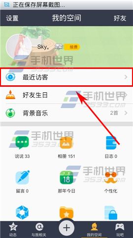 1)首先打開【手機(jī)QQ空間】,進(jìn)入界面后點(diǎn)擊右下方【我的空間】,再點(diǎn)擊【最近訪客】。(如下圖)