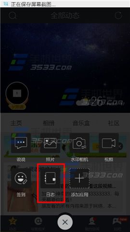 3)界面回到【+】號鍵后就可以在這里看到【日志】了哦,下次想寫日志直接點擊【+】號鍵就可以了。(如下圖)