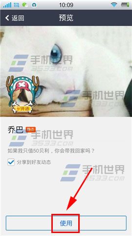 3)點擊【使用】,就設置成功啦,有木有感覺萌萌噠。(如下圖)