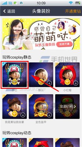 2)點擊【頭像裝扮】,選擇一個喜歡的裝扮(當然黃鉆的小伙伴選擇更多哦)。(如下圖)