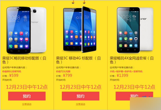 4 每個(gè)廠商有專屬的購買時(shí)間,分別是華為--12月23日中午12:00;魅族--12月24日中午12:00;一加--12月25日中午12:00。