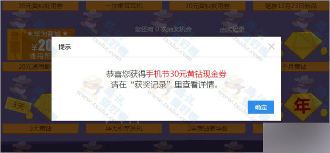 有人中3天黃鉆,小編連這個(gè)運(yùn)氣都沒有,只中了個(gè)30元黃鉆現(xiàn)金券!