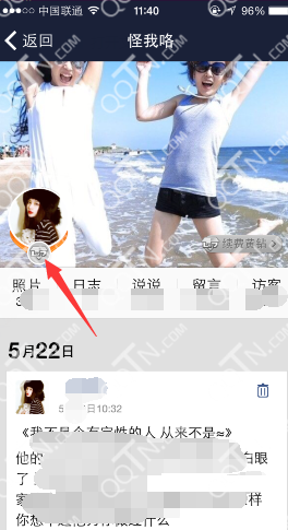1、登錄手機(jī)QQ空間,點(diǎn)擊我的頭像,如圖;