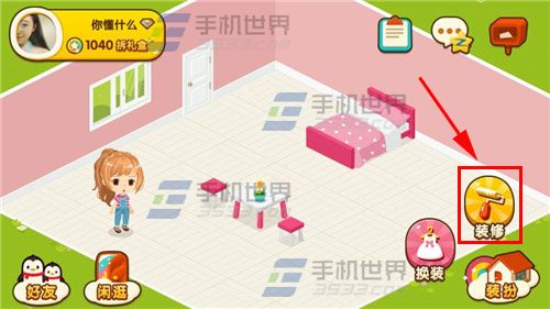 2)在空間小窩里,點擊右下角的【裝扮】,我們先來看看【裝修】。(如下圖)