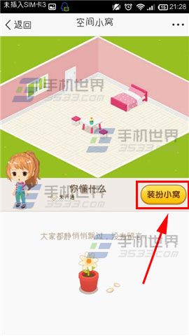 1)打開手機Q空間,點擊【我的空間】,在功能欄里找到【小窩】點擊進去,接著點擊【裝扮小窩】(需要下載安裝插件哦)。(如下圖)