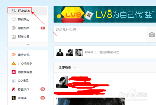 打開QQ空間后點擊空間左側的好友動態菜單選項打開好友動態;