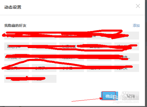選擇完需要屏蔽的好友后點擊對話框底部的確定按鈕,保存設置,就可以屏蔽好友動態了。