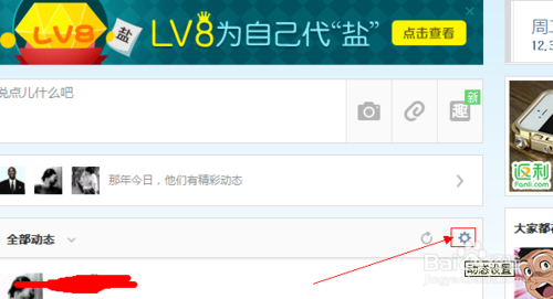打開好友動態后點擊頁面右上角的動態設置按鈕,打開動態設置對話框;