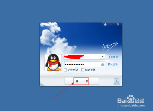 打開QQ軟件,在登錄頁面輸入QQ帳號及密碼然后點擊登錄按鈕,登錄QQ軟件;