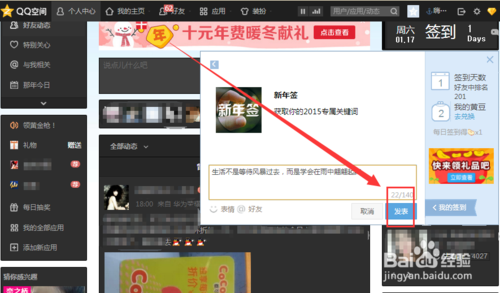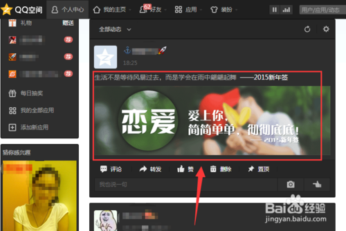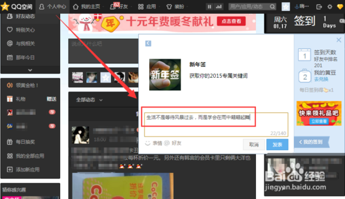 6、發表成功以后,進入自己的個人主頁,就可以看到自己的2015新年簽了,非常地漂亮,而且很有個性。
