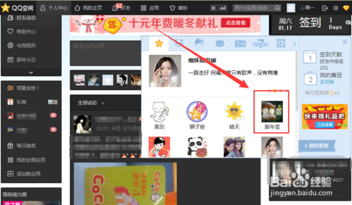 3、然后在彈出的窗口,單擊【新年簽】這個選項,如下圖所示。