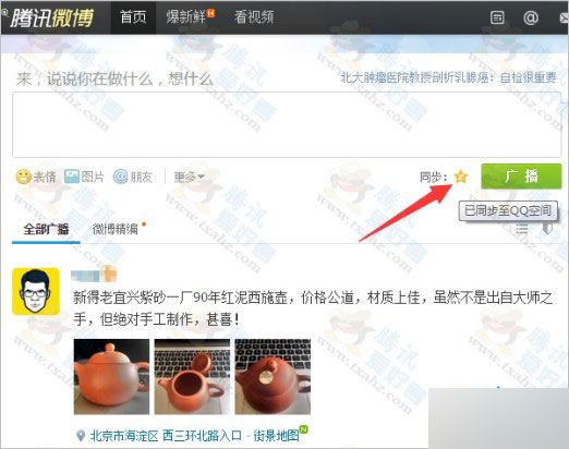 回頭再看看,原來微博發表廣播,默認同步QQ空間沒關!這尼瑪就是一個赤裸裸的教訓啊!親們,以后可別重蹈小編的覆轍啊!