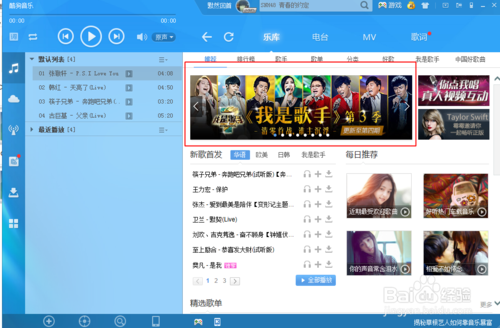 2、我打開酷狗程序之后,我們看見右邊會看見我是歌手的海報,我們點擊他