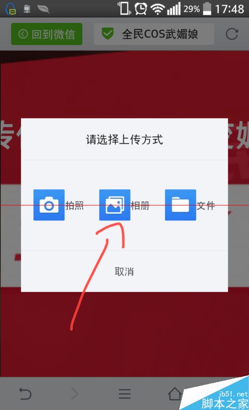 4、點擊“立即PK”進入上傳你的照片。天天P圖會將你的照片P成武媚娘樣式。
