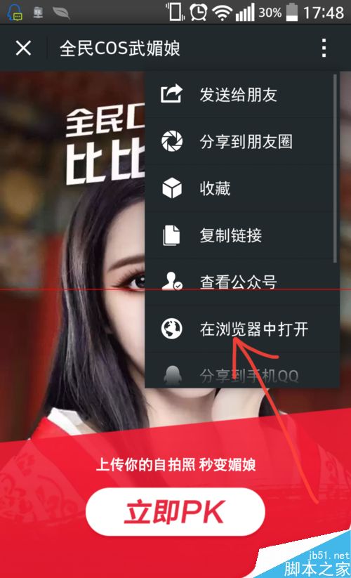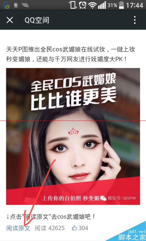 全民COS武媚娘比比誰更美是QQ旗下APP天天P圖推送的QQ空間活動。QQ強大的推送功能,不僅僅是QQ空間,電腦QQ、手機QQ、微信,你都可以收到消息。讓人不得不一玩。在QQ與微信上收到推送鏈接,最終還是要鏈接到QQ空間進入體驗。下面就以微信直接鏈接進入和使用網頁打開兩種方式來看看怎么玩玩天天P圖的在線試妝功能。