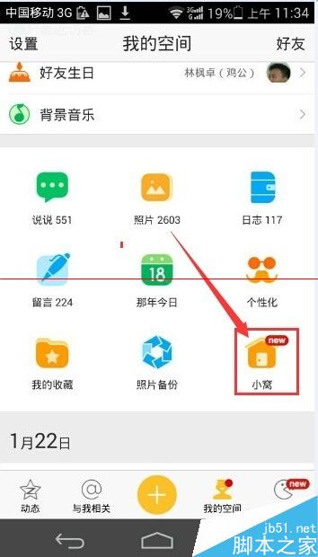 3、更新完成后,可以在頁(yè)面的說(shuō)說(shuō),日志等那一堆東西里找到,“小窩”。