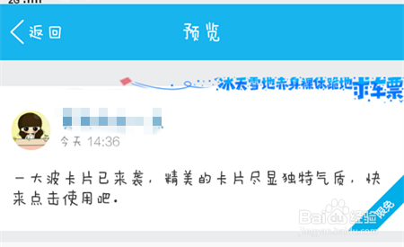 小編看到最近這個(gè)經(jīng)驗(yàn)是小編在瀏覽空間時(shí)發(fā)現(xiàn)的在一些朋友的說說上會(huì)有一個(gè)掛件給你發(fā)的說說裝飾的感覺。那么手機(jī)qq空間個(gè)性卡片裝扮如何使用?下面小編就為大家介紹一下,一起來看看吧!