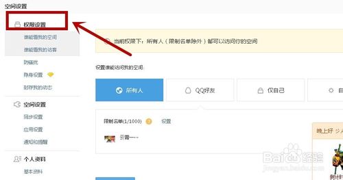 5、在界面中,選擇”所有人、QQ好友、僅自己、指定好友“等,如圖: