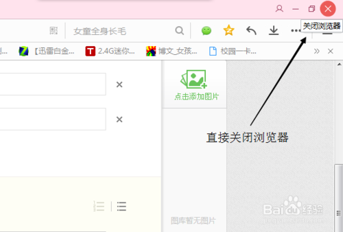 1、如果沒有其他網(wǎng)頁打開或者我們不準(zhǔn)備使用瀏覽器了,直接關(guān)閉瀏覽器。這時背景音樂應(yīng)該不會繼續(xù)播放了,如果繼續(xù)播放請使用下面的方法。