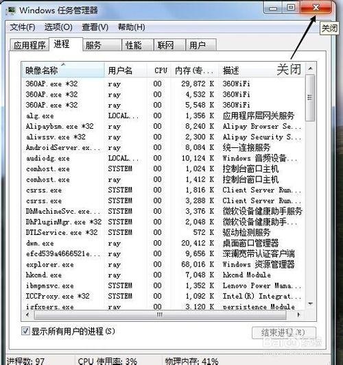 5、最后我們關(guān)掉Windows任務(wù)管理器。