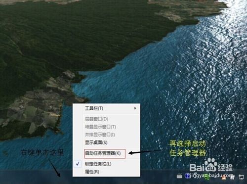 2、右鍵單擊任務(wù)欄,再選擇啟動任務(wù)管理器。