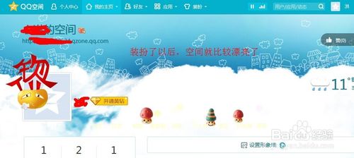 在新頁面中,你可以看到改過以后的空間,明顯漂亮了許多。如果想要更好看的一些裝扮,可以選擇成為qq的黃鉆,很多qq裝扮可以選擇。