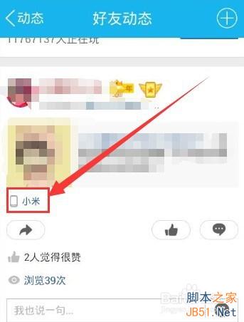 2、進入到自己的QQ空間后,找到好友發的說說,并且說說下面帶有手機型號的標志的說說,找到之后點擊這個手機型號。