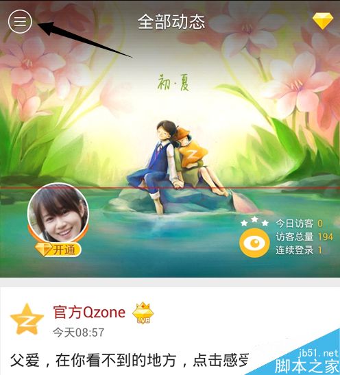 2、把手機QQ空間更新為最新版本后,重新登錄點擊左上角按鈕。