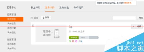 3、點擊上傳,添加基本信息,保存,轉碼中