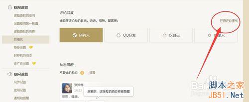1、有時(shí)候,在評論說說,或者在空間留言板上面留言,會(huì)出現(xiàn)無法評論的情況。這個(gè)時(shí)候,只需要關(guān)閉評論審核功能即可。