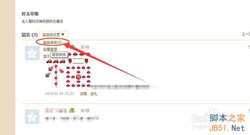 7、如果自己開啟了留言審核功能的話,那么,過一段時(shí)間就需要去看下審核一下留言哦,避免有人給你留言你沒有看到。審核留言,只需要你進(jìn)入到留言板,然后點(diǎn)擊“留言板設(shè)置”,在下拉菜單選擇“留言審核”即可對留言進(jìn)行審核了。