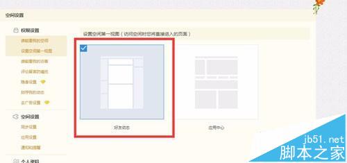 5、如果你希望進(jìn)來(lái)空間看到好友動(dòng)態(tài)就勾選“好友動(dòng)態(tài)”,如果進(jìn)來(lái)想直接進(jìn)應(yīng)用,就勾選“應(yīng)用中心”