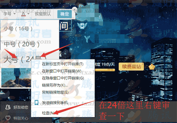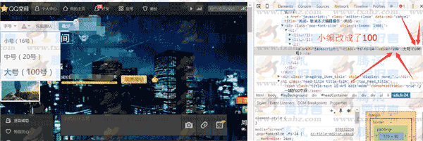 4.在去選擇剛修改的100號,剛剛最大是24號,我們審查元素修改為100號看效果了吧? 可能有人說自慰的 我們刷新看下 重新進入空間一樣顯示的。
